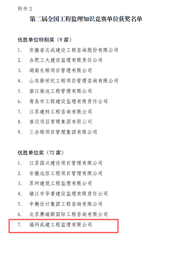 公司黄中红、严琪在第二届全国工程监理知识竞赛中载誉而归:黄中红总监组一等奖(福建唯一),严琪青年组三等奖!公司更斩获“优胜单位奖”!750人竞技,我们以实力说话!